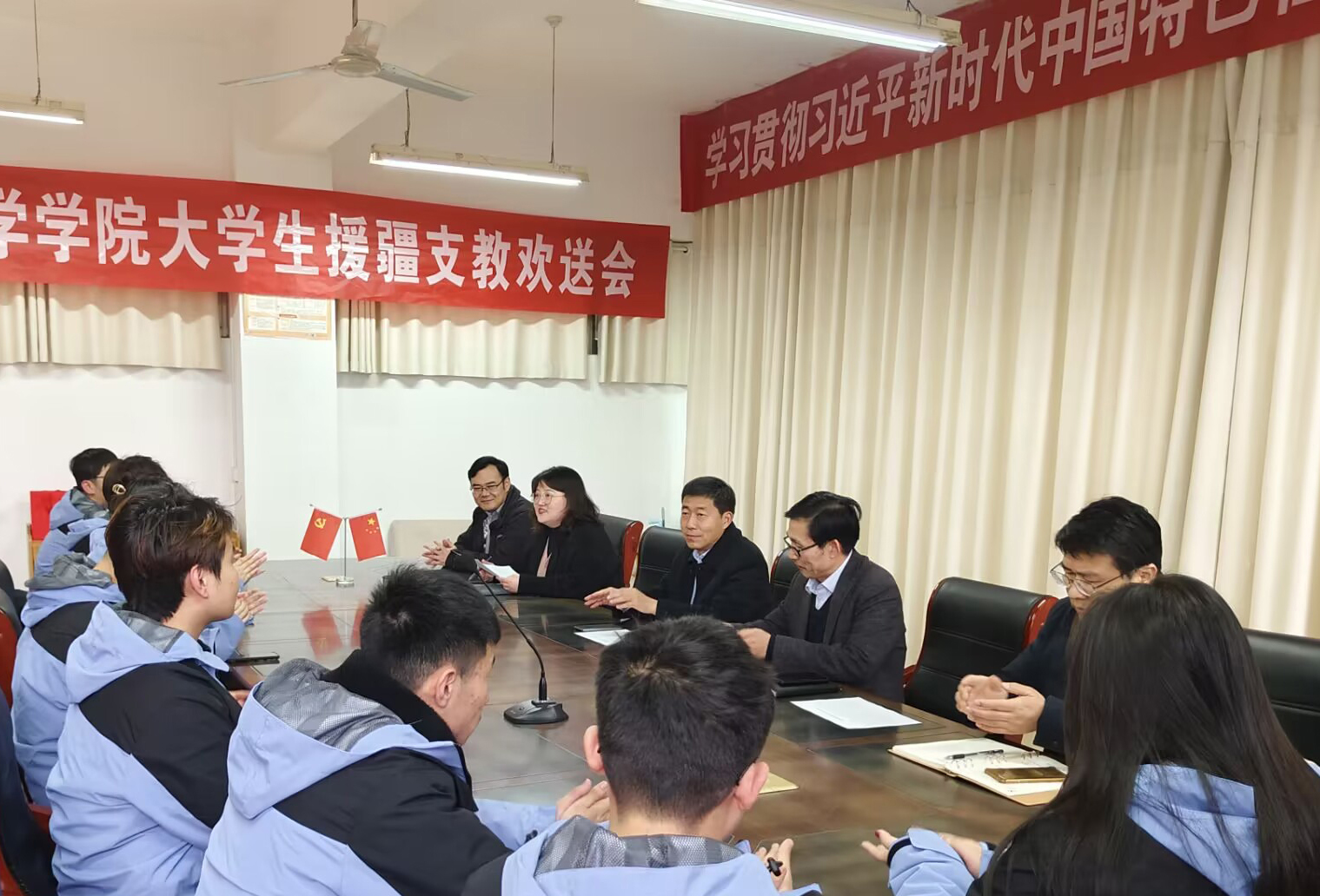 3月5日上午,太阳成集团tyc33455ccww召开2024年援疆支教学生欢送会,学院党政领导、辅导员及10名赴新疆支教学生参加本次欢送会。
