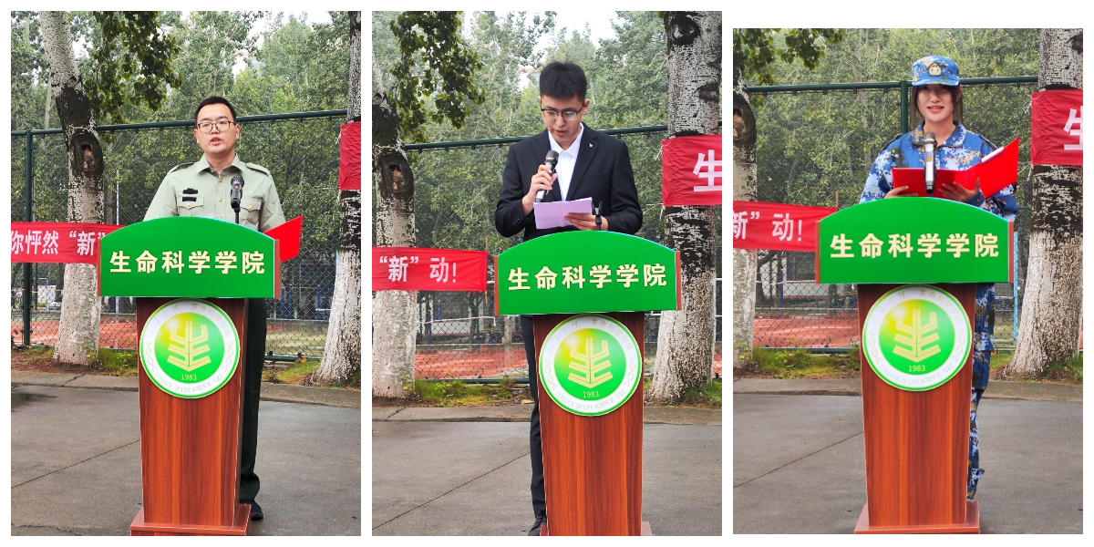 典礼在雄壮的国歌声中拉开帷幕。2023级智慧农业本科一班班主任、32连指导员王宏晋作为教师代表发言。他勉励新生们要懂得感恩、善于学习、勤于思考,求真学问、练真本领,争做“腹有诗书、本领高强”的追梦人。2020级生物技术本科一班、学生会主席蔡威作为在校生代表发言,分享了自己在学校学习、生活的感悟,并勉励学弟学妹们要明确航向、找准目标,常思常问、勤勉踏实,用奋斗精神铸就青春底色。2023级植物科学与技术本科一班甘郁盟同学作为2021级新生代表发言,分享了自己初入大学校园时的所见所闻和心路历程,表示在接下来的大学生活中将志存高远、勤学好问,不负韶华、不负时代,争做中华民族伟大复兴中国梦的追梦人和圆梦人。