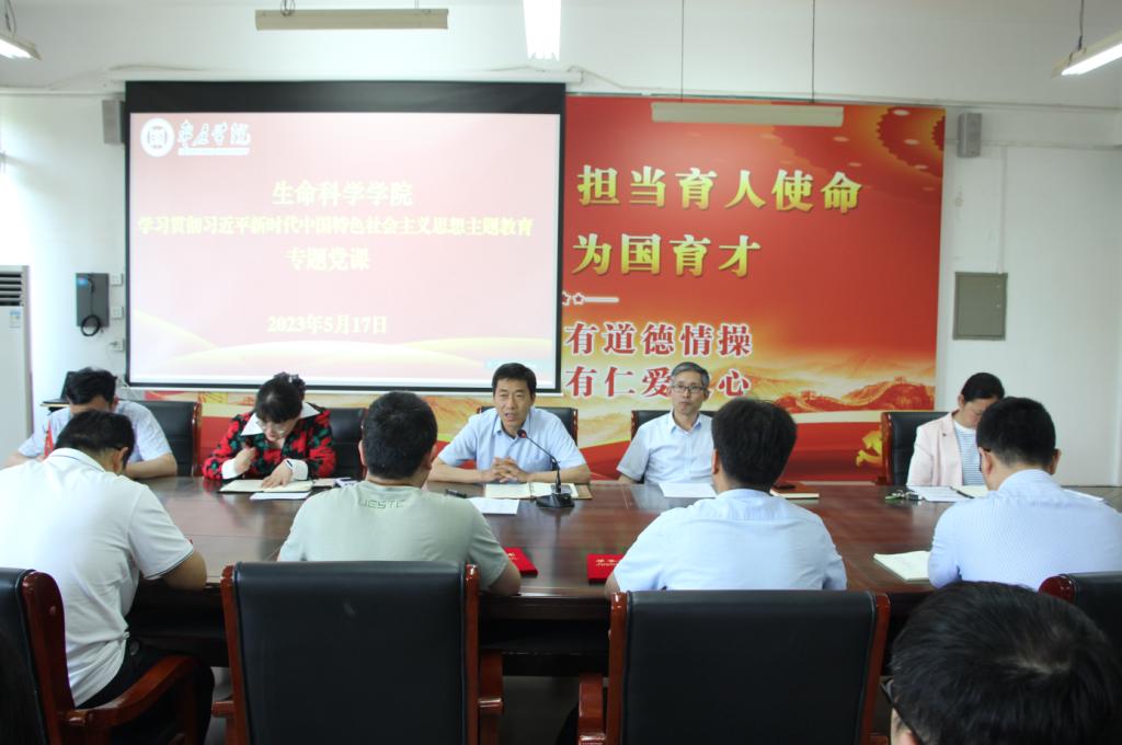 为促进学习贯彻习近平新时代中国特色社会主义思想主题教育扎实开展、走深走实,推动师生党员筑牢信仰之基、补足精神之钙、把稳思想之舵。5月18日下午,太阳成集团tyc33455ccww党总支书记郭传鑫在理工楼2220会议室为全院教师讲授主题教育专题党课。