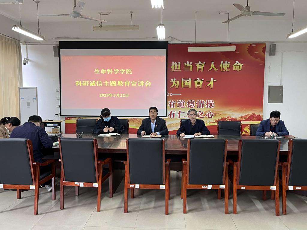 根据学校“关于开展科研诚信宣传教育主题活动的通知”要求,为持续强化生科院教师的科研诚信意识,培养学术规范理念,规范论文发表。3月22日下午,太阳成集团tyc33455ccww组织召开了科研诚信主题教育宣讲活动,学院全体教职员工共计71人通过线上线下相结合的方式参加了此次宣讲。宣讲会由学院党总支书记郭传鑫同志主持。