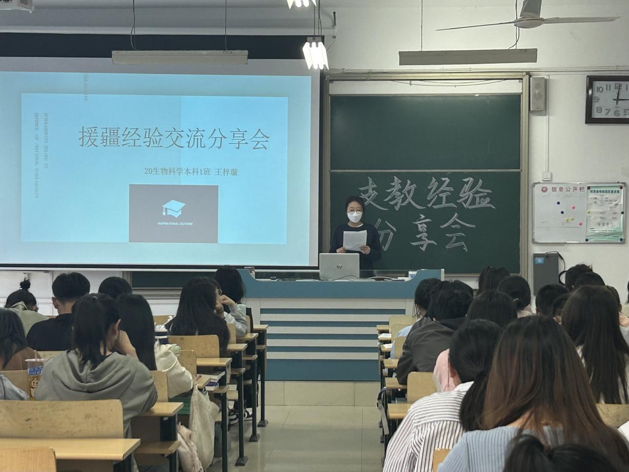 会上,5位学子讲述了自己的支教生涯与经验,他们就环境适应、角色转变、人际关系、课堂教学等方面向大家传授了经验。他们鼓励在校学生要积极投身于实习支教实践中来,要学会“自找苦吃”,更要发扬这种精气神,认真上好每一堂课,践行为人师表的初心与信念。