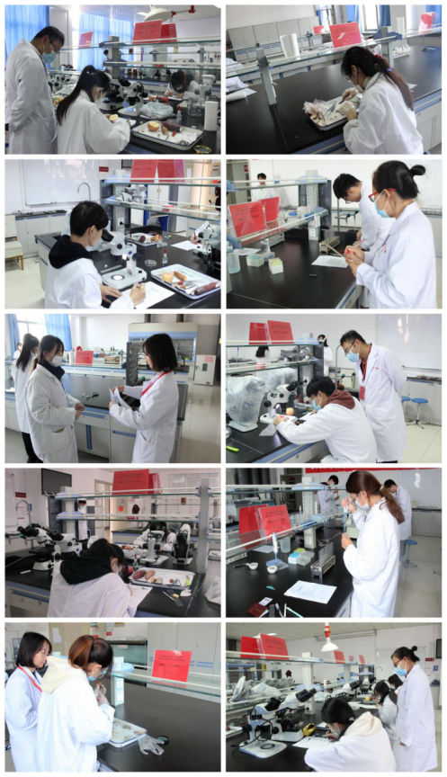 在本次实验技能大赛中,参赛选手精神饱满,认真专注,有条不紊地运用专业知识分析实验题目,设计实验方法,进行各项操作:动物形态结构的观察,内部结构的解剖;植物的徒手切片,各类植物形态结构的解剖与识别;生物样品维生素C含量的测定、可见光分光光度计的使用、标准曲线的绘制等。整个比赛过程中我院学子态度严谨,操作流畅,充分展现了较高实验操作技能水平、踏实的学习风气和务实求实的科研精神。