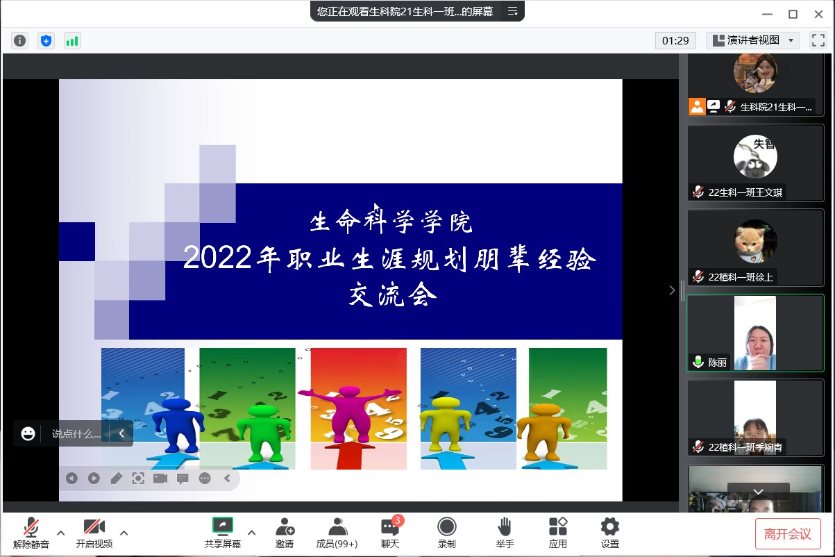 为培养我院新生对专业学习兴趣,明确大学学习和努力方向,太阳成集团tyc33455ccww于11月9日举办“职业生涯规划朋辈经验线上交流会。交流会邀请20级、19级在学习、实践活动等方面取得优异成绩的学生代表进行学习心得及大学感悟分享。2022级全体学生参加了分享会。
