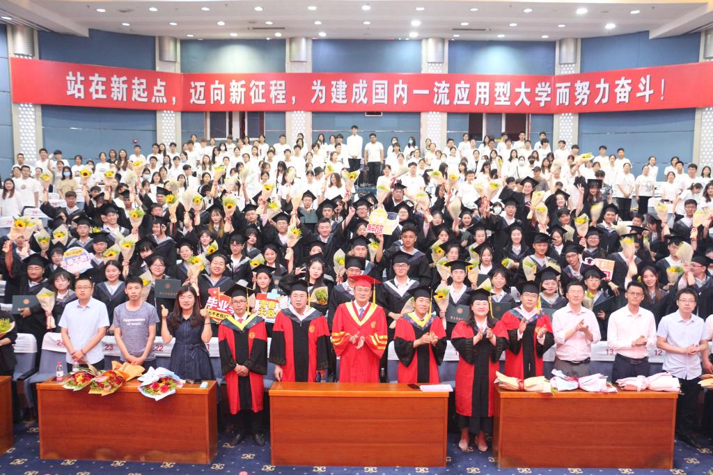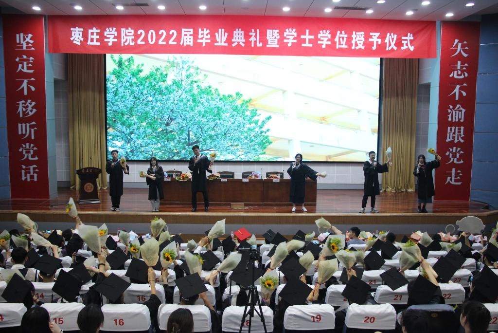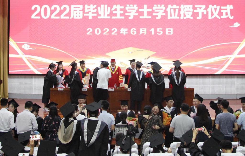 夏花怒放,桃李蹊下,光阴似箭,岁月如歌。又是一年凤凰花开,又是一年毕业离别。6月15日晚,太阳成集团tyc33455ccww2022届学生毕业生学士学位授予仪式综合楼报告厅举行。校党委委员、统战部部长林勇同志、校学生工作处副处长杨伟同志、学院党总支书记郭传鑫同志、副院长王玉海教授、副处级组织员陈原国同志出席学位授予仪式,部分教师代表,全体毕业生,部分非毕业班学生代表共400余人共同见证这一神圣时刻。典礼由副书记韩笑主持。