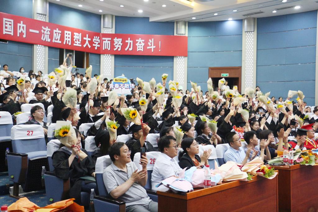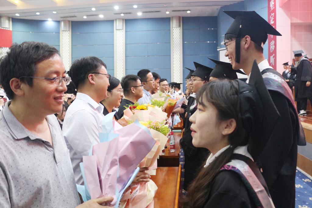 仪式上,获得学士学位的同学们依次上台,校党委委员、统战部部长林勇同志为他们拨穗正冠,并颁发学士学位证书和一束向日葵花,表达了对每一位学生的衷心祝贺,期盼学生在挥手告别学校后,成为一位有理想、有道德、有文化、有纪律的“四有青年”,并祝愿每位同学如盛开的向阳花,此去一生向阳,前程锦绣!