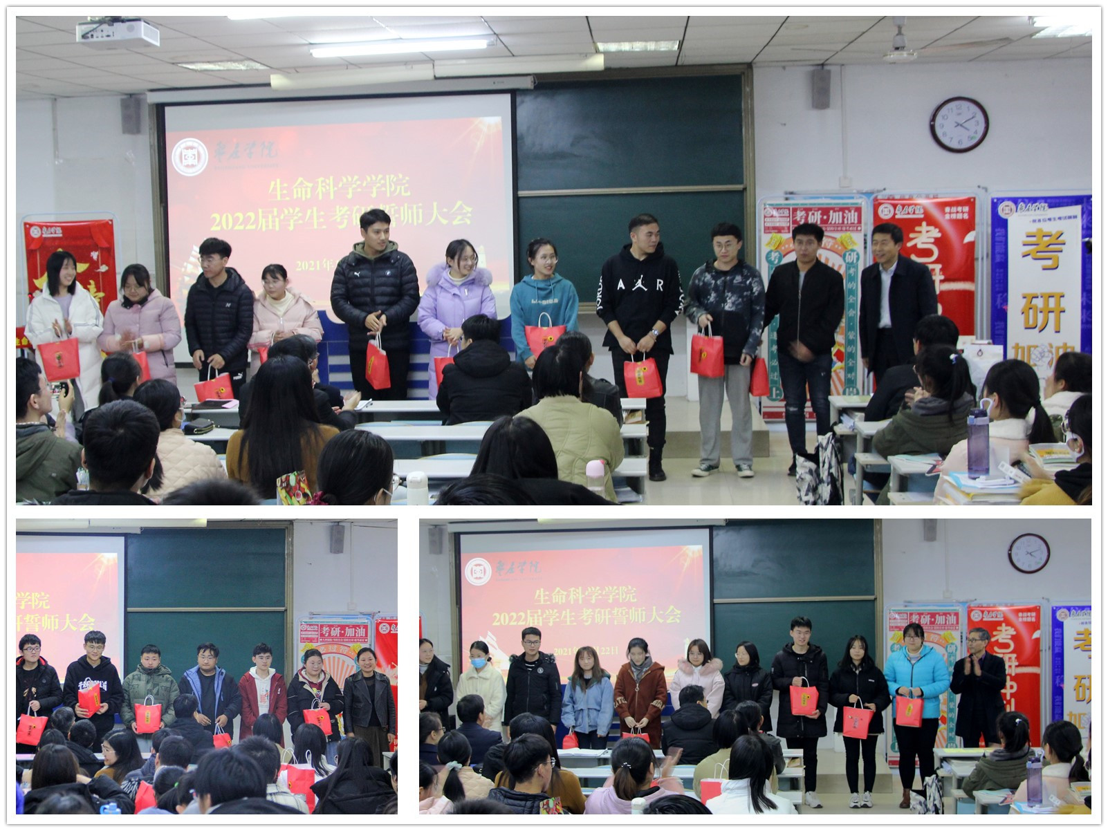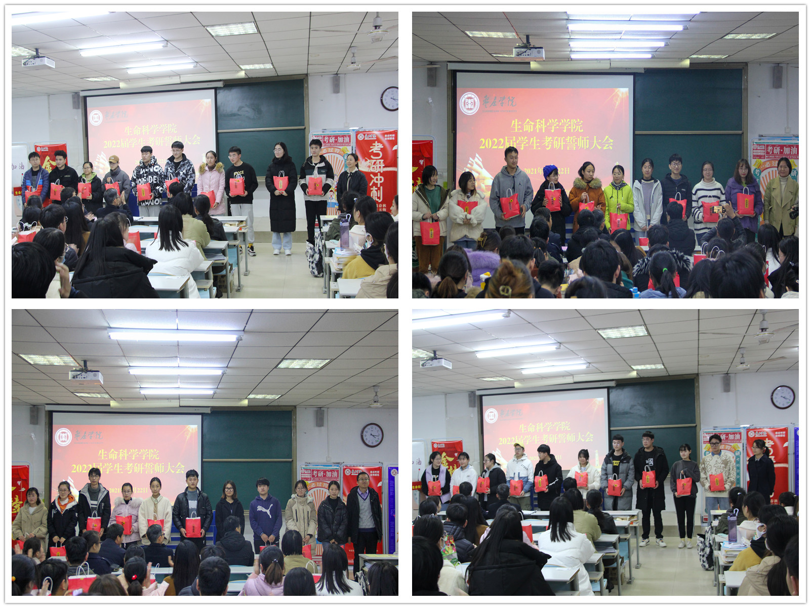 誓师大会在“考研加油!”的欢呼声中圆满结束。热情的鼓励、丰富的礼物、深切的关爱、浓浓的真情,温暖着每一位考研学子的心。许多学生热泪盈眶,激动不已,并表示一定会以优异的成绩回报母校、回报学院领导老师的关怀。