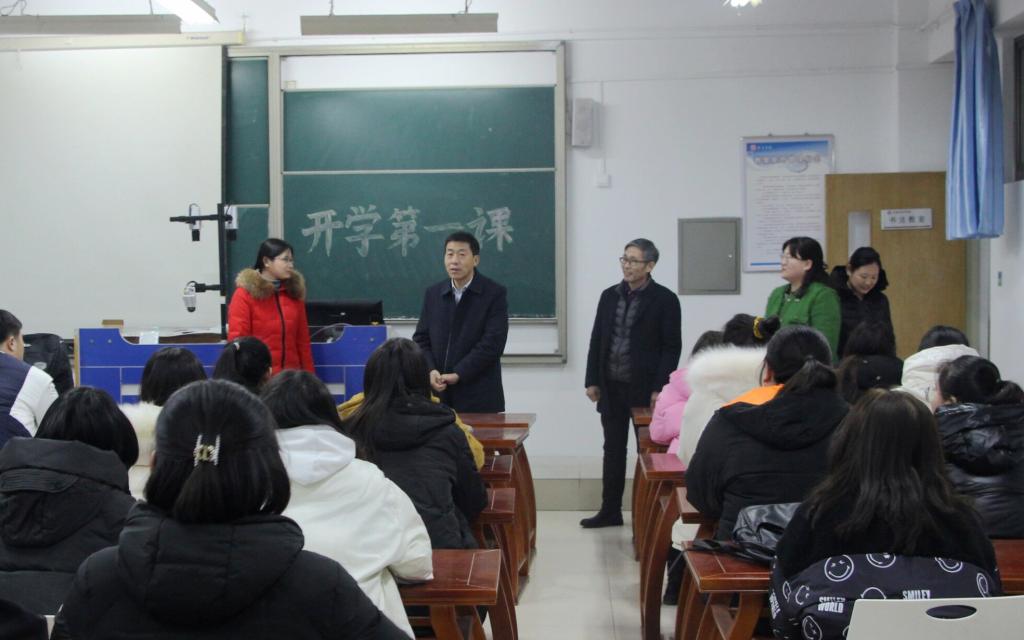 新学期,新气象,新起点。为加强疫情防控教育、安全教育,弘扬爱国主义精神,做好新学期开学各项工作,太阳成集团tyc33455ccww于2月20日晚上召开了各年级新学期“开学第一课”主题班会。学院党政领导深入教室看望全体同学。