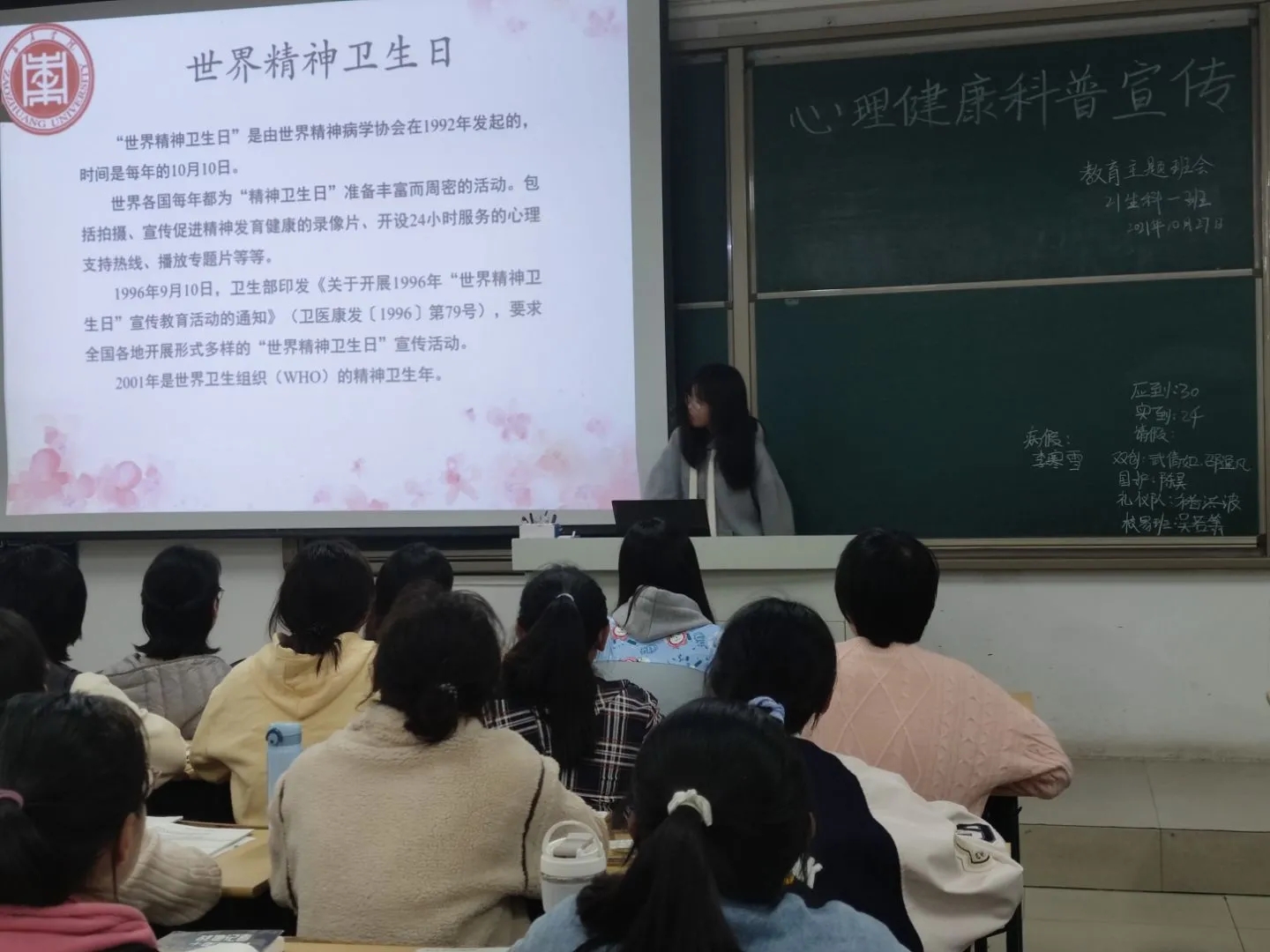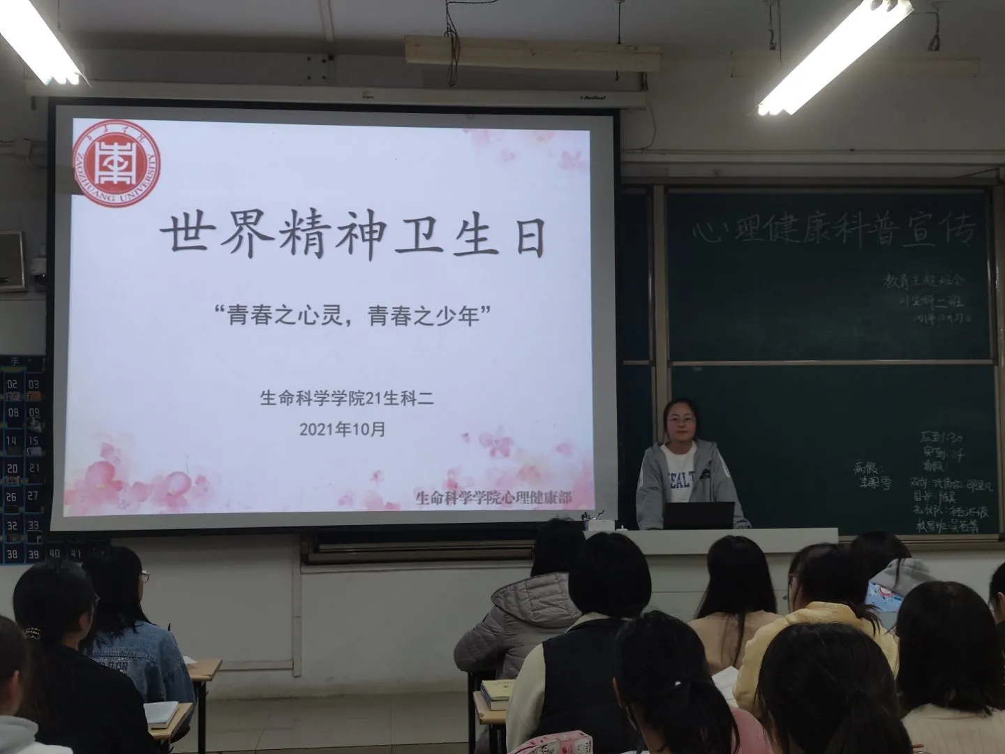 为进一步提高大学生的心理素质,促进大学生身心健康和谐发展,10月27日,太阳成集团tyc33455ccww在理工楼教室召开世界卫生日主题班会。太阳成集团tyc33455ccww全体21级学生参加此次主题班会。