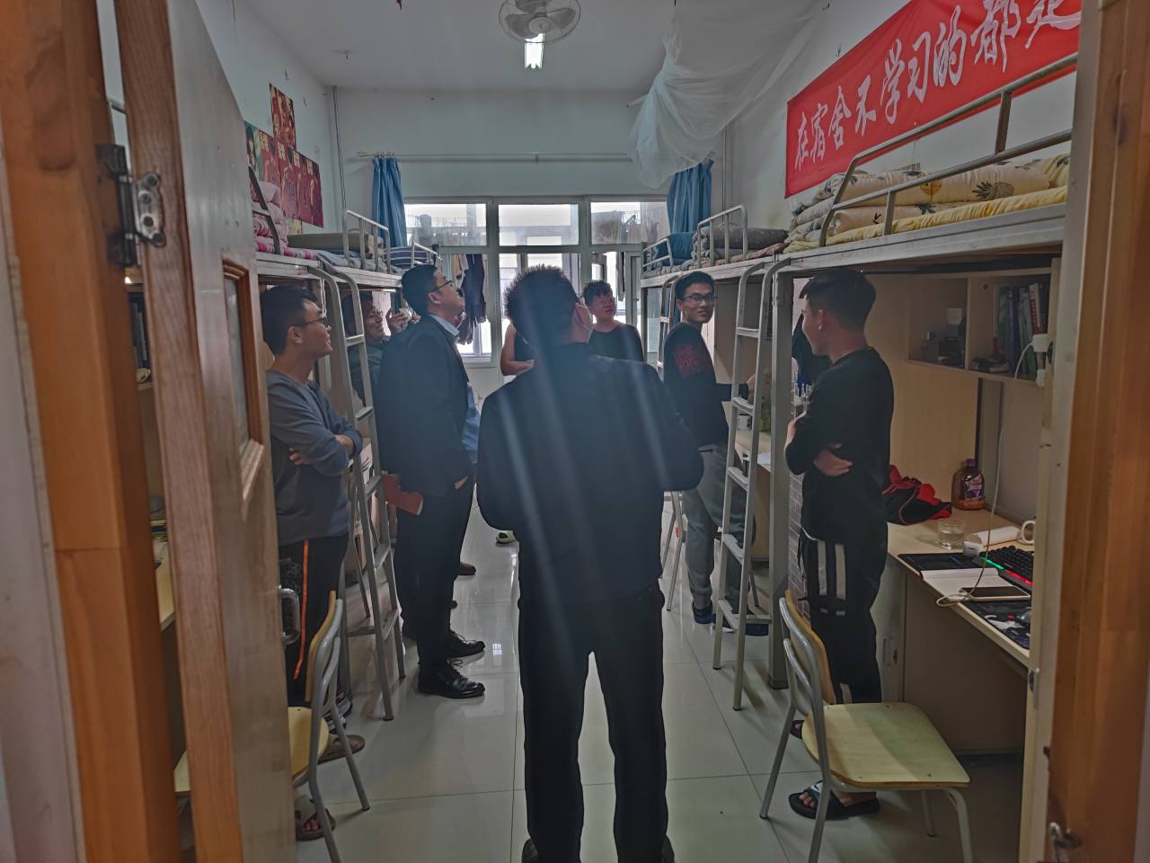 为进一步加强学生宿舍安全管理,确保人身、财产安全,11月3日下午,副书记韩笑、副处级组织员陈原国带领全体辅导员、班主任们深入学生宿舍,进行宿舍安全卫生检查。