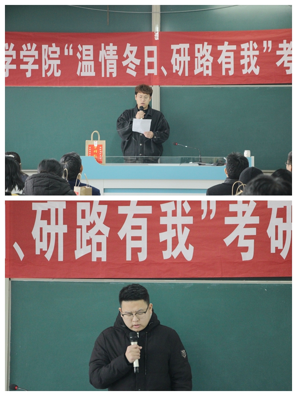 学生代表巩进才代表学弟学妹为考研的学长们加油助威。学生刘彦进代表全体考研学子作了表态发言,感谢学院领导老师一直以来的关心与支持,并承诺不辜负学院的悉心栽培与老师们的殷切希望,努力拼搏,全心奋战。