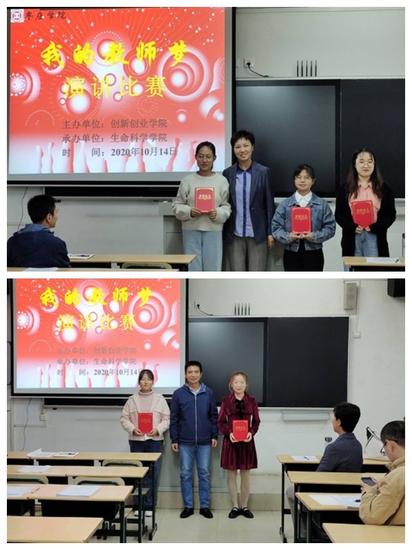 10月14日,由太阳集团tyc33455太阳集团学院主办、太阳成集团tyc33455ccww承办的“2020年生物科学(师范类)专业‘我的教师梦’演讲比赛”在太阳成集团tyc33455ccww理工楼2219胜利召开。本次比赛有近30名同学参赛,由张鹏老师(枣庄市第十五中学)、刘宏老师(枣庄市广播电视台)、以及韩庆香、苏朋、聂萍萍(太阳成集团tyc33455ccww)共5位老师担任评委。比赛由尉鸿飞老师主持。