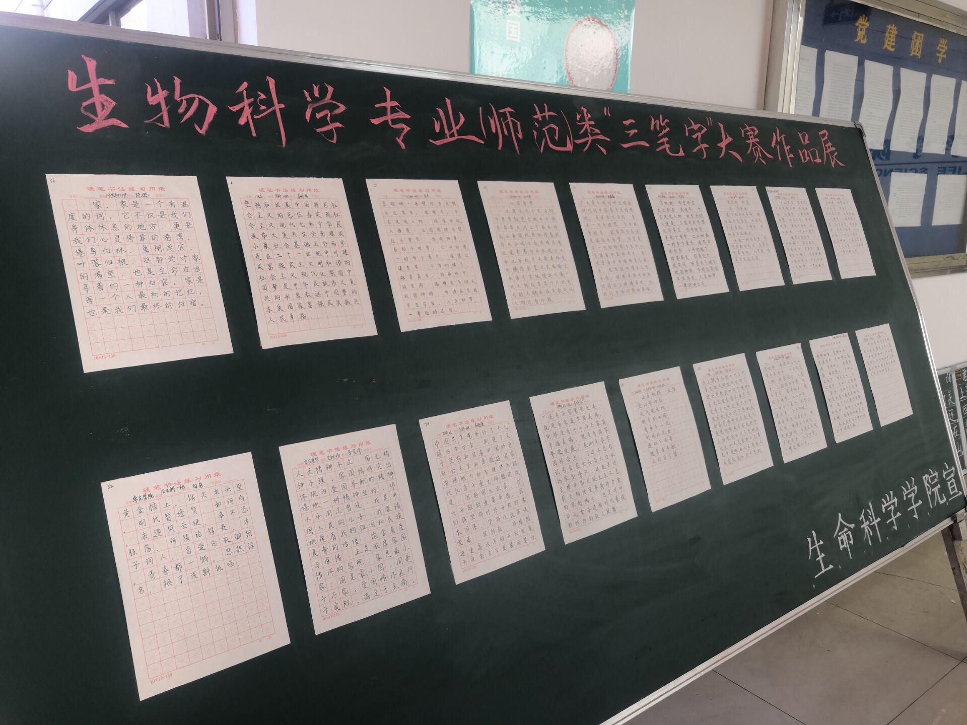 10月11日上午,太阳成集团tyc33455ccww在理工楼2219和2319教室举办师范生综合素质系列大赛的第三个类别的比赛--“三笔字”大赛,活动由2019级生物科学专业班主任苏朋博士、太阳集团主任聂萍萍博士、生物科学教研室主任申恒伦博士共同组织。