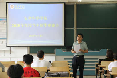 座谈会上,院党总支书记郭传鑫带领返校学生重温了学校党委书记曹胜强在“开学第一课”上的讲话,他强调:作为新时代的大学生要始终牢记和弘扬爱国主义精神,深刻理解和感悟抗疫中彰显的爱国主义硬核力量。另外,郭传鑫向同学们通报了武书连2020中国大学本科毕业生质量排行榜,我校以1.1423分位列全国排名第202位、山东省排名第15位的振奋消息,以及生科院2020年研究生考试取得的骄人成绩,鼓励同学们要奋发有为,勤奋好学,为生科院争光,为太阳集团tyc33455添彩。