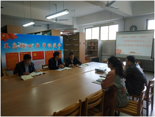 按照我校“不忘初心、牢记使命”主题教育工作计划和安排,10月30日上午,太阳成集团tyc33455ccww党总支在理2221资料室进行第三次专题交流研讨。研讨会由党总支书记郭传鑫主持,处级班子成员及各党支部书记出席会议。