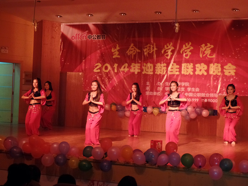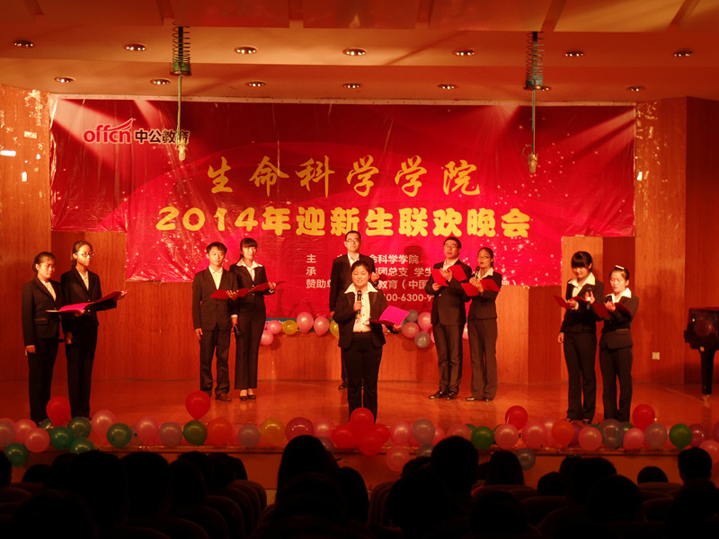 晚会在学生党员的集体朗诵《社会主义核心价值观》中拉开帷幕,精彩的朗诵彰显了大学生昂扬向上的精神风貌。歌舞类节目《女兵走在大街上》、《你是我的眼》、《欢乐青春》、《阿拉伯之夜》展现了生科学子的青春、激情与活力,动感十足而又魅力四射,迎来观众阵阵掌声与喝彩;街舞、搞笑舞的炫酷与幽默更是将晚会推向高潮,现场欢声笑语不断。主席团和助理辅导员的情景剧《大学四年》告诫新生如何更加有意义地度过大学生活。相声《大学初体验》、《给您健康》,小品《明日之星》,话剧《找自己》结合大学生学习、生活中的点滴,向新同学展示了大学期间可能遇到的各种问题与困惑,在风趣、诙谐的表演中教育学生要合理规划大学生活,学会感恩,切勿虚度光阴。最后,晚会在手语节目《勇往直前》中落下帷幕。