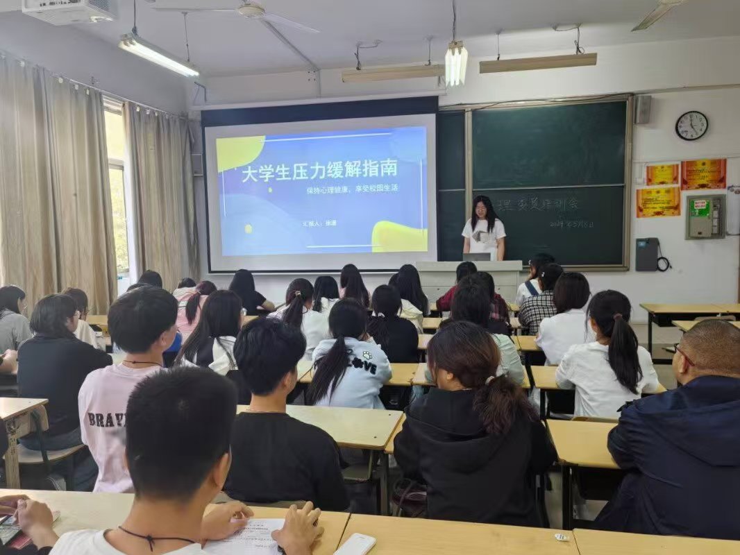 为进一步提升心理委员工作能力,缓解大学生压力,2024年10月30日17:00—17:30,太阳成集团tyc33455ccww于理工楼2207教室开展了“大学生压力缓解指南”培训会。本次会议参加人员为各班心理委员及宿舍互助志愿者,由心理健康部干事徐潇主持讲说。