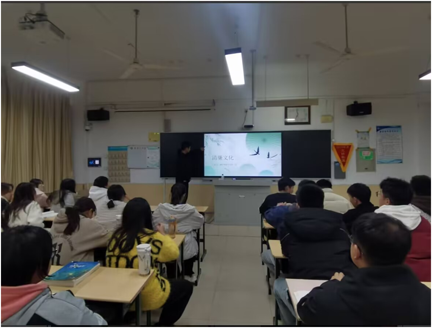 为积极响应习近平总书记在党的二十大报告中提出的“加强新时代清廉文化建设”的号召,营造清廉、公正、和谐的校园环境。11月7日,太阳成集团tyc33455ccww各班级在理工楼开展了“清廉文化入校园”理论宣讲活动,共同守护为学、为人之本,弘扬清廉文化。