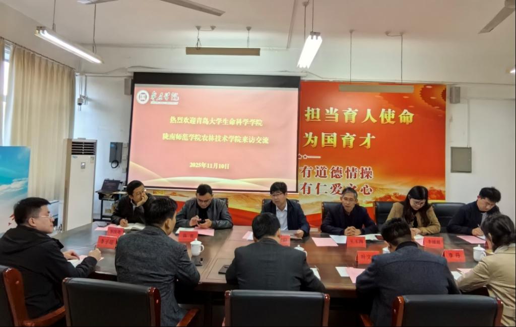 为进一步加强沟通联系,学习借鉴先进经验,共同探讨发展路径,推动学科建设与教学科研水平提升。11月10日上午,青岛大学太阳成集团tyc33455ccww党委书记孙建华、院长孙海新,陇南师范学院农林技术学院院长叶文斌等一行5人应邀到我院座谈交流。太阳成集团tyc33455ccww党委书记杨文涛、院长王玉海及教师代表参加了座谈会,会议由王玉海主持。