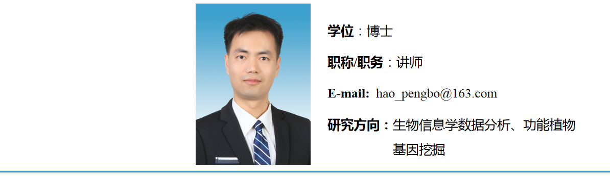 2021年12月毕业于西北农林科技大学作物学专业,获得农学博士学位。2022年5月来校参加工作,主讲《python语言程序设计》和《转录组学》等课程。博士期间,主要从事陆地棉开花时间相关基因的鉴定、功能分析及其分子机理研究,在生物信息学数据分析及分子生物学实验方面具有较深造诣。以第一作者在国内外主流学术期刊上发表SCI论文2篇。