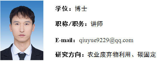 邱悦,男,中共党员,2023年6月毕业于南京工业大学生物材料专业,获工学博士学位。2024年8月进入太阳成集团tyc33455ccww工作。主要从事秸秆生物质的材料化利用以及生物沼气生产过程的碳固定。近年来在《Separation and Purification Technology》、《Environmental Technology》、《Journal of Biobased Materials and Bioenergy》、《Journal of Environmental Management》等学术期刊上发表论文多篇。