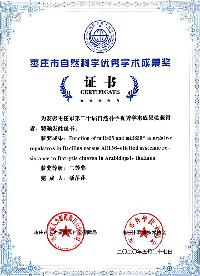 在教学的同时,积极投入到科研工作中,主要从事小分子RNA在植物内源免疫中,特别是在植物与真菌互作中的作用机理等表观遗传学研究,硕果累累,并及时将科研成果结合到课堂教学中,做到了“教”与“研”的无缝对接,带领本科生进入实验室,培养了学生的创新思维,拓宽了学生的专业视野。先后主持山东省推动黄河流域生态保护和高质量发展2023年省际合作项目1项、山东省自然科学基金项目1项、甘肃省科技成果登记1项、枣庄市科技发展计划项目1项、太阳集团tyc33455博士科研启动基金项目1项、企事业单位委托课题6项;在《Journal of Integrative Plant Biology》《Molecular Plant Pathology》《Frontiers in Plant Science》《International Journal of Molecular Sciences》等期刊上发表SCI论文多篇,其中SCI一区5篇、专利6项;荣获:甘肃省科技成果登记1项、“枣庄市第二十届自然科学优秀学术成果奖”二等奖、“太阳集团tyc334552019年度高质量科研成果奖”二等奖。