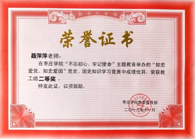 作为教工第一党支部副书记、灯塔管理员,时刻以一个优秀共产党员的标准严格要求自己,以双周三主题党日、三会一课、民主生活会为契机,以“灯塔-党建在线”、“学习强国”为平台,加强政治理论学习。党务工作扎实,争先创优意识强。2024年,带领党支部获批:首批太阳集团tyc33455“党建工作样板支部”;2025年,支部获批:首批太阳集团tyc33455“双带头人教师党支部书记工作室”,同时被评定为“太阳集团tyc33455五星级党支部”。此外,将主题党日、组织生活会及民主评议党员大会、支部大会和支部委员会等学习通知、会议总结、党费收缴台账等及时上传到“灯塔-党建在线”山东e支部模块。荣获:枣庄市“学灯塔、用灯塔”先进典型-优秀党员、太阳集团tyc33455“知史爱党、知史爱国”党史、国史知识学习竞赛教工组二等奖、教工第一党支部-优秀党员、学习强国学习达人。