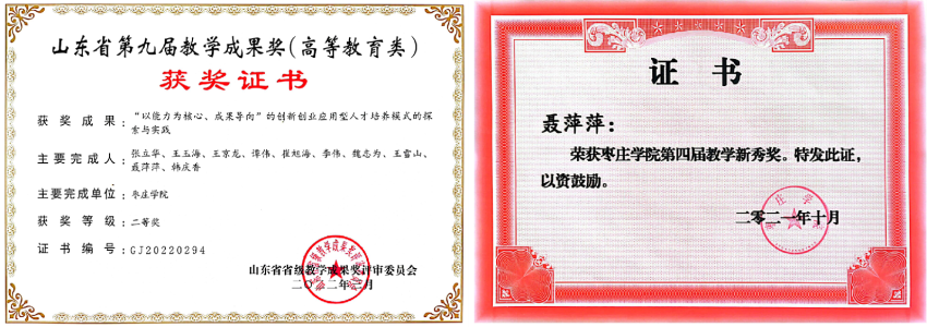 作为一名高校教师,时刻铭记教书育人的使命,甘当人梯,甘当铺路石,以人格魅力引导学生心灵,以学术造诣开启学生的智慧之门。努力使自己成为有理想信念、有道德情操、有扎实知识、有仁爱之心的好老师。工作态度端正,备课详尽细致,精心设计教案和教学环节,能够在教学过程中较好地掌握教学节奏,激发学生学习兴趣。特别注重与学生的沟通交流,在教学过程中不断创新,不断探索和尝试新的教学方法。先后承担《生物化学》、《生物化学实验》、《生化分离技术》、《细胞毒理学》、《植物病理学》和《创业基础》等课程的教学任务,年平均教学工作量673.65学时。荣获:山东省第九届教学成果奖(高等教育类)二等奖、山东生物化学与分子生物学会“第三届青年教师微课大赛”一等奖、太阳集团tyc33455第四届教学新秀奖、太阳集团tyc33455线上教学工作简报(第05期)[《创业基础》线上教学优秀案例]、教育部产学合作协同育人项目1项、校级教改项目1项;在疫情期间,太阳集团tyc33455:停课不停学、每日“早八”准时开课,“包场式直播”在山东教育电视台被报道。