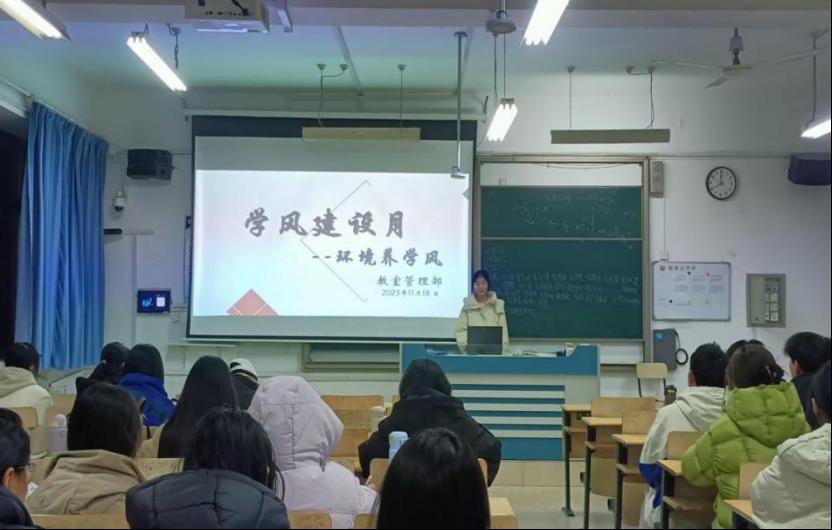 为深化“环境养学风”理念在学风建设月中的浸润引领作用,增强太阳成集团tyc33455ccww师生对教室环境共建的认同感,培养学生优良品德与自律意识,11月18日,太阳成集团tyc33455ccww文明自律委员会教室管理部面向2024级和2025级全体学生,组织开展了“环境养学风”主题宣讲活动。