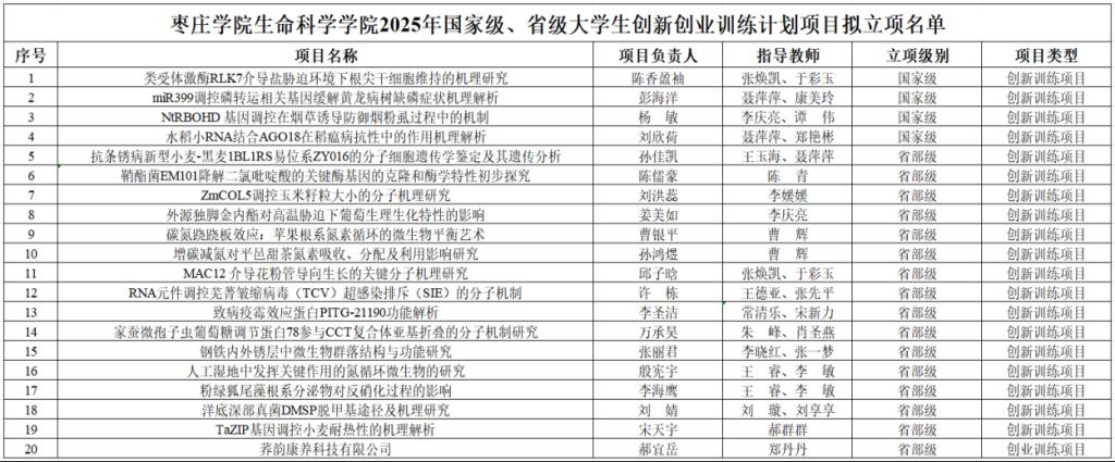近日,山东省教育厅公布了2025年山东省大学生太阳集团训练计划项目评审结果。今年,全校共获批项目81项,其中国家级项目25项、省级项目56项。我院共获批20项,其中国家级立项4项、省部级立项16项;另外,还有23个项目获得校级立项。获批数量和质量创历史新高。