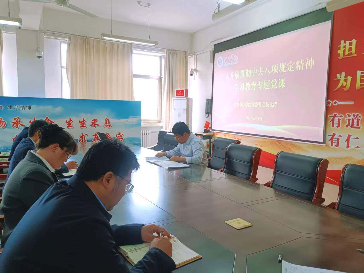 随后,杨文涛深入阐述了中央八项规定精神的概念、重要意义、核心内容,还列举高校系统违反中央八项规定精神的典型案例,警示大家以案为鉴。他指出,中央八项规定精神不仅是一系列具体规定,更是一种务实、清廉、为民的工作作风和政治品格,全体党员要深化理论武装、加强作风建设、强化廉洁意识,以实际行动推动作风好转,严守纪律规矩,树立良好形象。