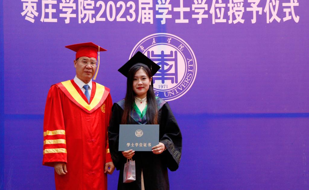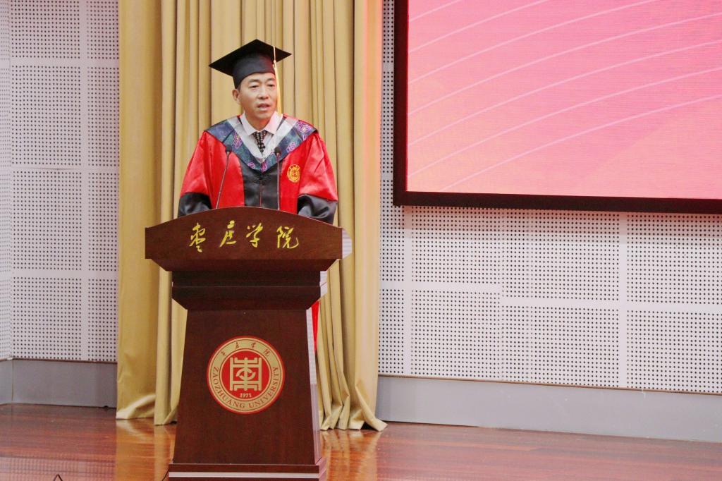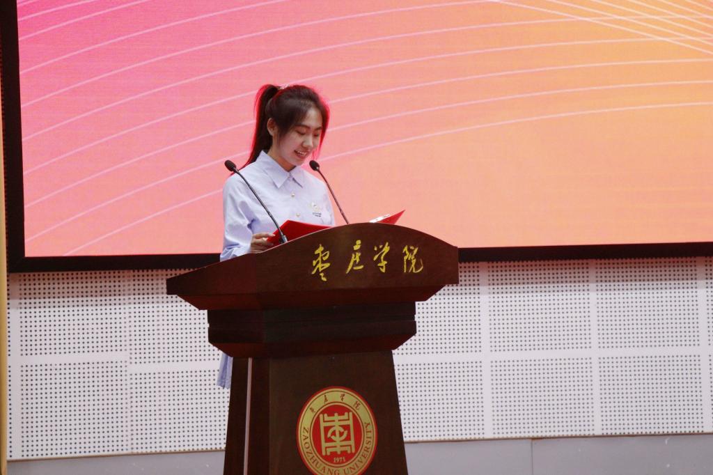 毕业生代表徐东方、韩珂用诗歌朗诵的方式叙述了在枣院的学习和成长历程,表达了对母校的眷恋不舍和对未来的无限憧憬。