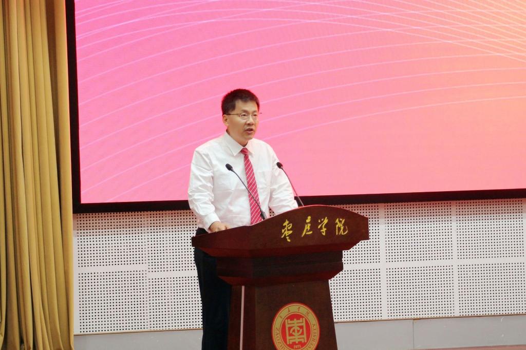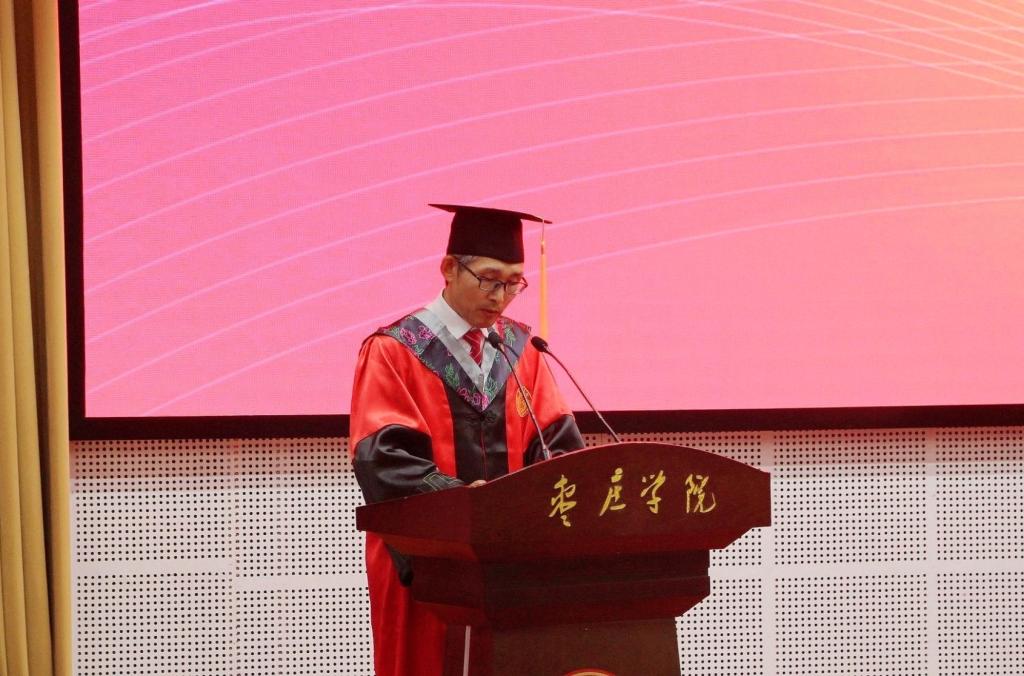 党总支书记郭传鑫代表学院进行致辞,向顺利完成学业的2023届毕业生表示热烈祝贺,向辛勤培育学生成长成才的老师们表示崇高的敬意。他深情回顾了从2019-2023,青春的生科学院与毕业生们一道不断进步、成长,取得一个又一个骄傲的成绩。全体2023届学子是学院发展的亲历者、参与者、实践者、彰显者,感谢毕业生们与学院甘苦与共、风雨同行!希望全体毕业生保持奋斗姿态,敢想敢为,在勤勉笃行中攻坚克难;激扬青春力量,善作善成,在守正创新中开创未来;肩负时代重任,脚踏实地,在实干苦干中行稳致远。在报效祖国、振兴民族、服务人民中成就个人梦想,书写无愧于时代的人生芳华。