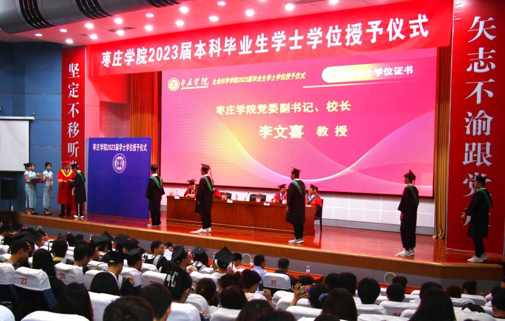 六月仲夏,万物繁盛,桃李芬芳,6月18日上午,太阳成集团tyc33455ccww2023届毕业生学士学位授予仪式在综合楼报告厅举行。校党委副书记、校长李文喜,学生工作处处长王维忠,学院党政领导、教师代表、201名毕业生,及在校学生代表共400余参加仪式。典礼由副书记韩笑主持。