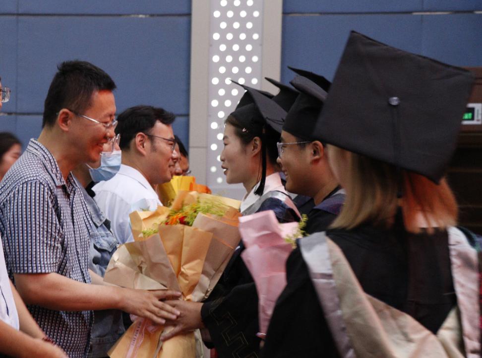毕业生代表为在场领导老师献上鲜花、热情拥抱、倾心话别。