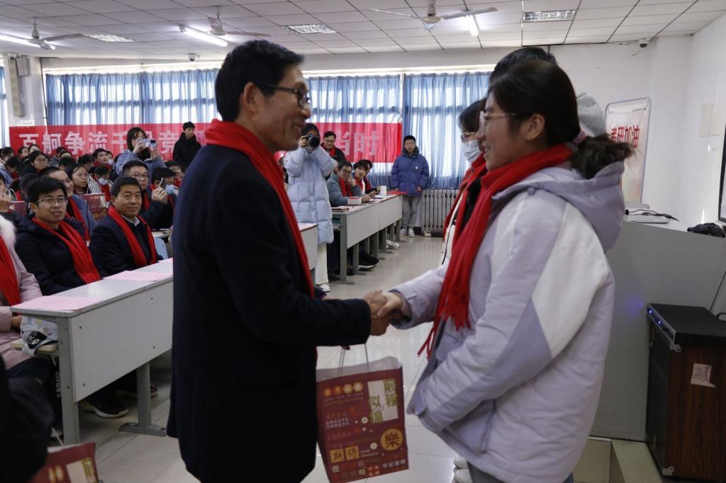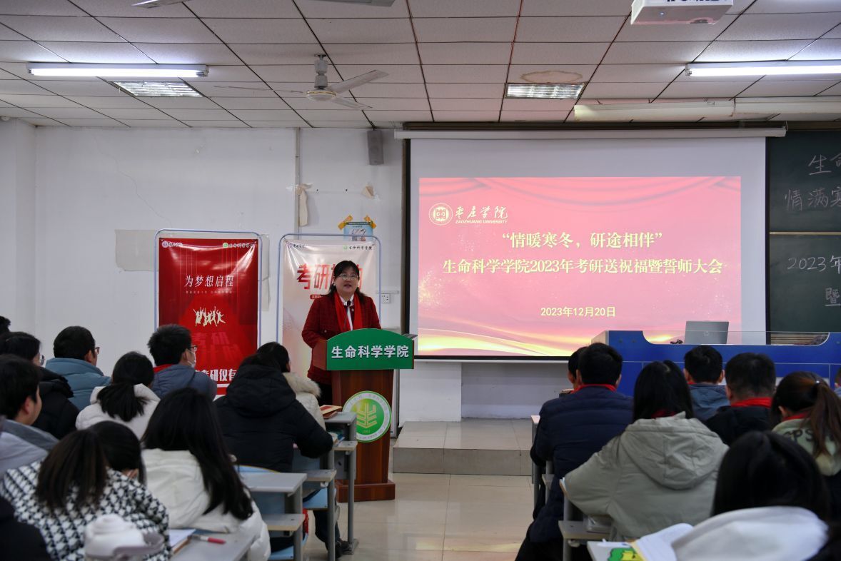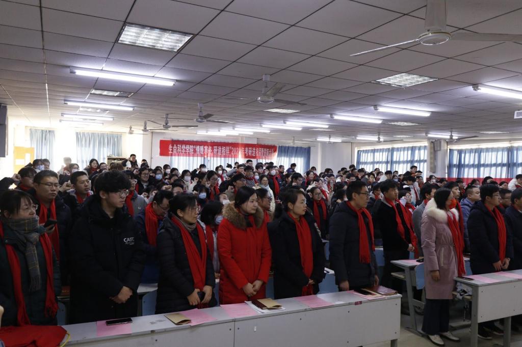 为帮助考研学子坚定备考信心,鼓舞考研士气,传递温暖和力量,12月20日下午,太阳成集团tyc33455ccww在理工楼2205教室举办情暖寒冬,研途相伴”2023年考研送祝福暨誓师大会。学院党政领导、辅导员班主任、各指导教师、优秀校友代表、2020级全体考研学子和部分其他年级代表参加了大会。
