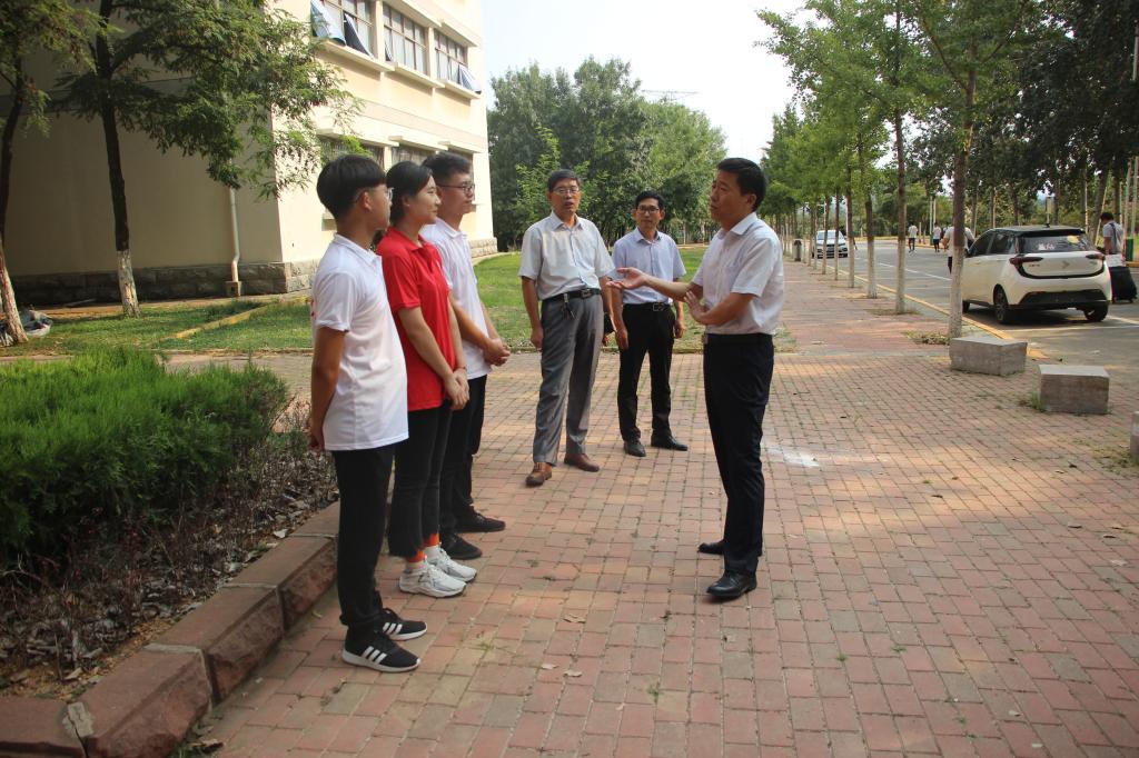 8月31日下午,太阳成集团tyc33455ccww院长王洪凯、党总支书记郭传鑫、党总支副书记陈原国和院长助理王玉海为我院赴新疆喀什支教的三名学生送行。