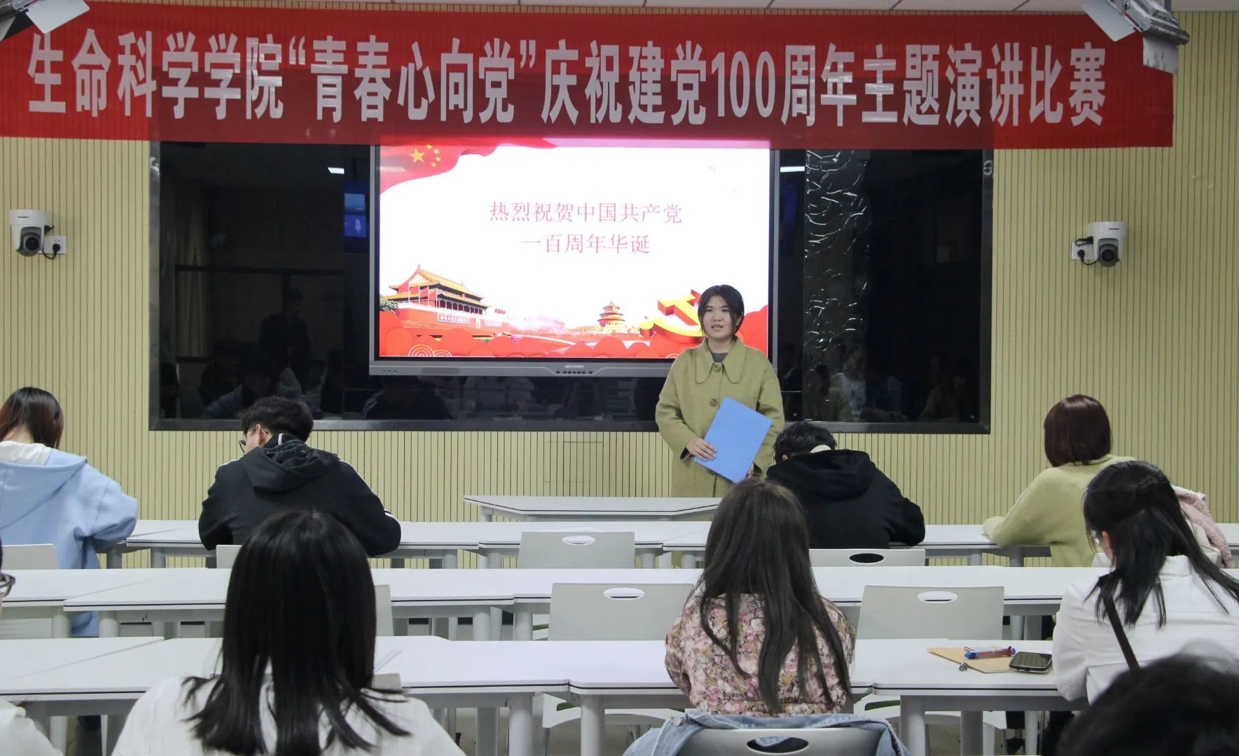 活动伊始,参赛选手们依据抽签顺序进行演讲。选手们准备充分,精神抖擞,紧扣党史、新中国史、改革开放史、社会主义发展史以及优秀共产党员的先进事迹,结合歌颂中国共产党成立以来领导全国人民在革命、建设和改革进程中所取得的伟大成就,充分抒发对党、对祖国、对中国特色社会主义事业的忠诚热爱。场面激荡人心、荡气回肠,带给观众振奋和感动。经过激烈的角逐,最终王梓璇、边红梅获得一等奖,于港、郭佳、张艳丽获得二等奖,蔡永倩、王晓宇、王琛、黄凤林、岑永萃获得三等奖。