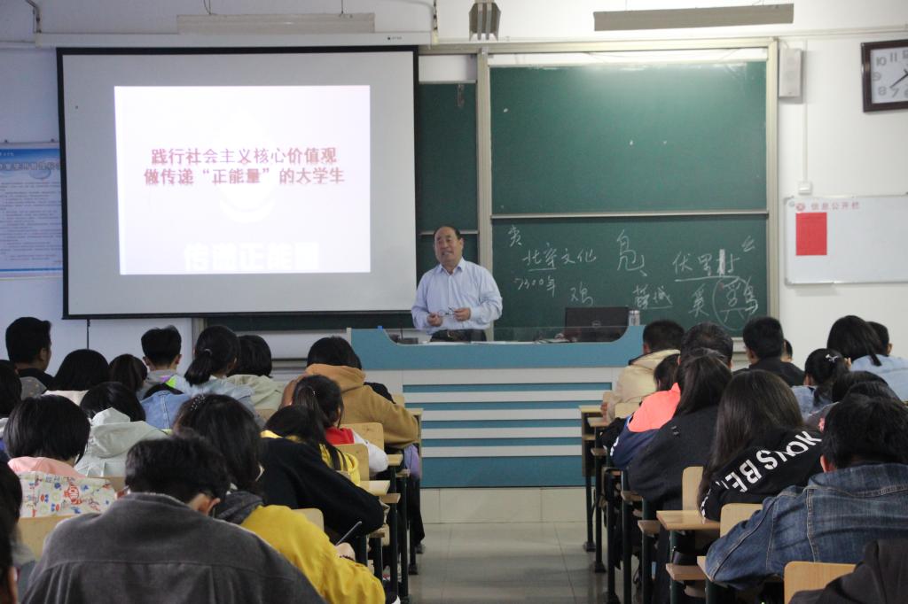 10月24日下午,太阳成集团tyc33455ccww邀请我校离退休干部党委委员邓兴珍为学生做了题为“践行社会主义核心价值观,做传递正能量的大学生”的报告, 2018级全体同学参加了报告会。