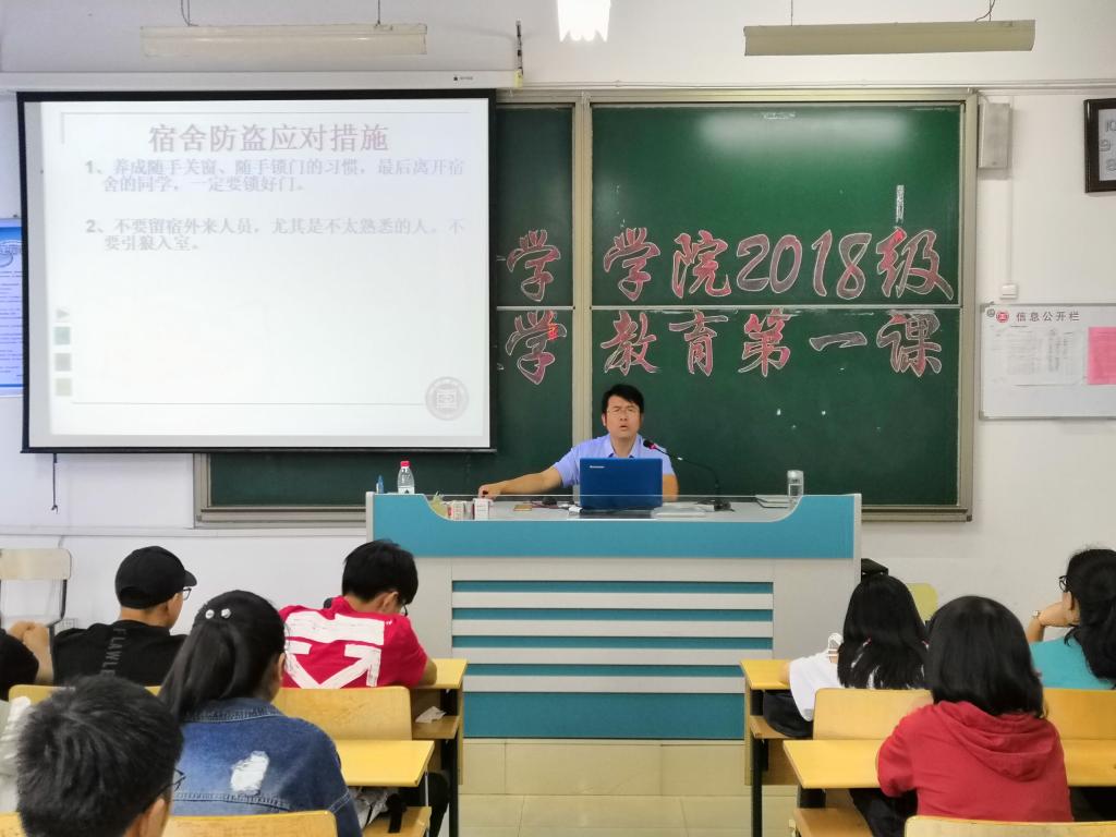 9月10日,太阳成集团tyc33455ccww为2018级新生开展入学教育第一课活动,太阳成集团tyc33455ccww院长王洪凯、党总支书记郭传鑫、党总支副书记陈原国、我院部分教师代表和辅导员老师出席了此次活动。