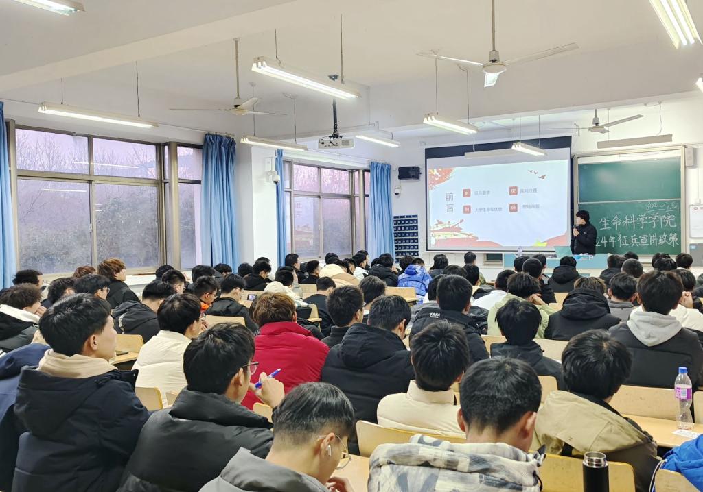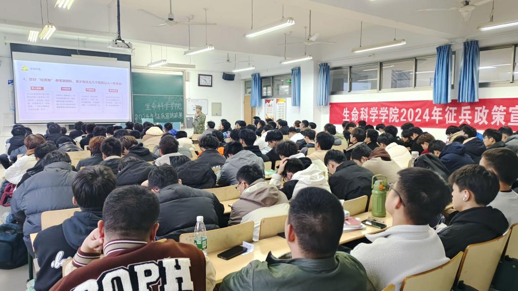 第二阶段的宣讲会上,退役士兵代表朱凤赠、王文泰两位学生分享了从军经历带给他们的磨炼成长和对军旅生活的深厚感情。并向参会学生详细介绍了征兵政策新变化、征兵要求、参军优势、报名参军流程等内容。
