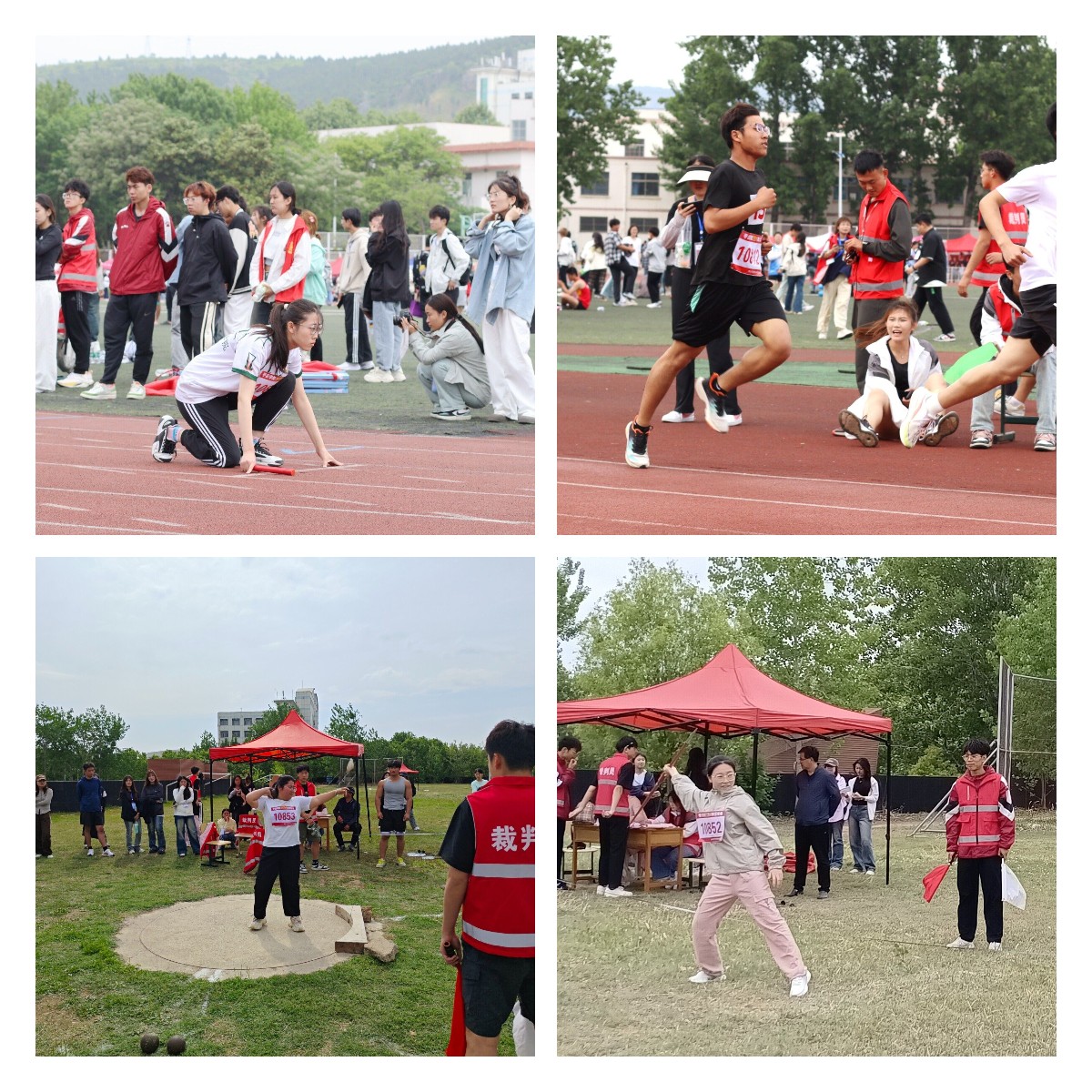 滴滴汗水,飘在绿茵场上,伴随选手们矫健的步伐,坚定的目光,迈步向前!百米冲刺,助跑起跳,全力一掷,每一项都展现着运动员过硬的体能。观众席上同学们加油鼓劲,阵阵呐喊,团结一心。