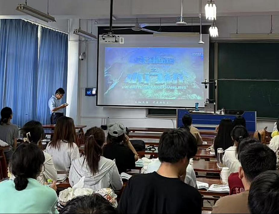 本次观影活动中,各班级统一组织观看了红色影片《长津湖之水门桥》。影片中志愿军战士们不畏严寒,与装备精良的敌人展开殊死搏斗,全景式展现了长津湖战役的悲壮历程。英烈们前赴后继,用血肉之躯筑起保家卫国的钢铁长城,他们不畏牺牲的精神,激发了学生们的爱国热情与责任担当。观影结束后,学生们以“青年使命与历史担当”为主题展开了热烈讨论。大家纷纷表示,要以影片中的英雄先烈为榜样,将观影带来的情感触动转化为学习动力,在新时代勇挑重担、踔厉奋发。
