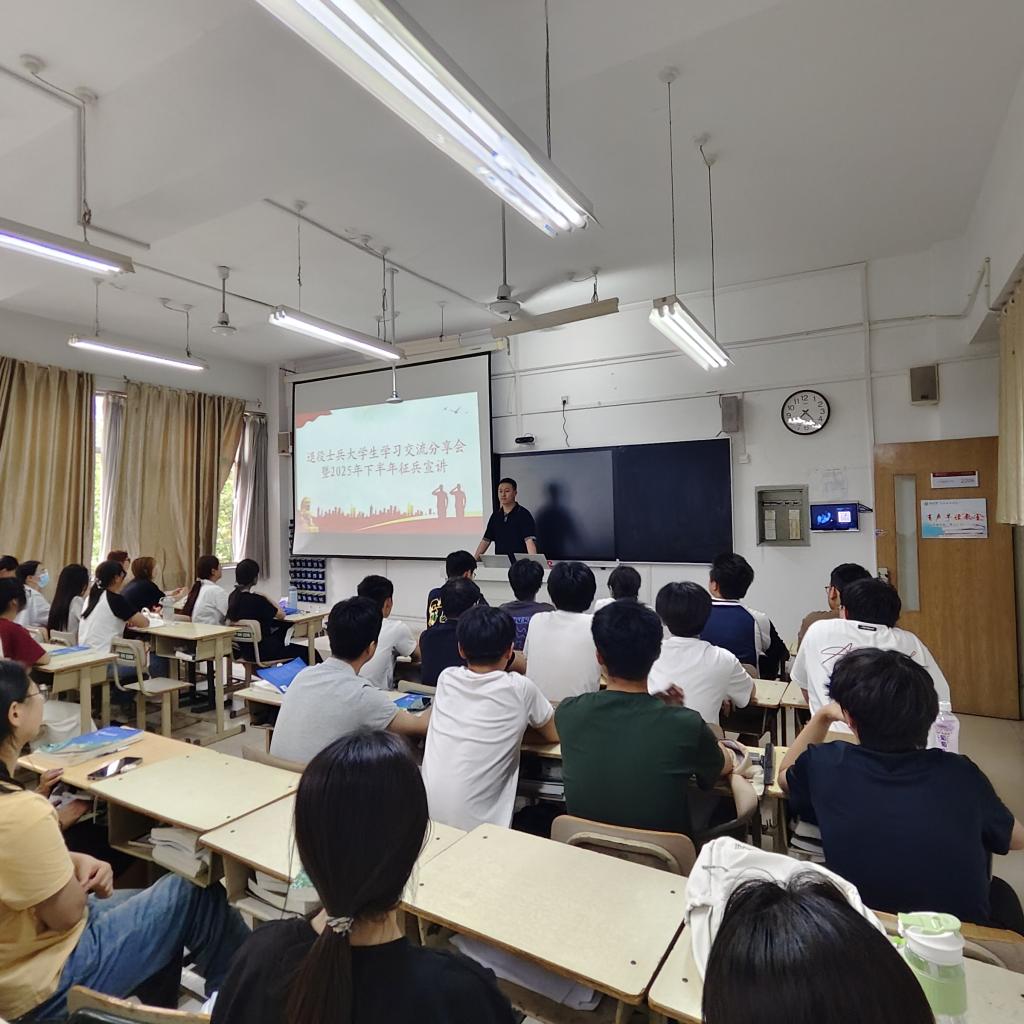 分享会结束后会上,退役大学生代表介绍了参军的基本条件,包括年龄、报名流程等,详细讲解了国家为大学生入伍提供的各项支持政策,如国家资助政策、应征入伍优惠政策、升学优惠政策等,切实帮助同学们全面了解参军后的发展前景。