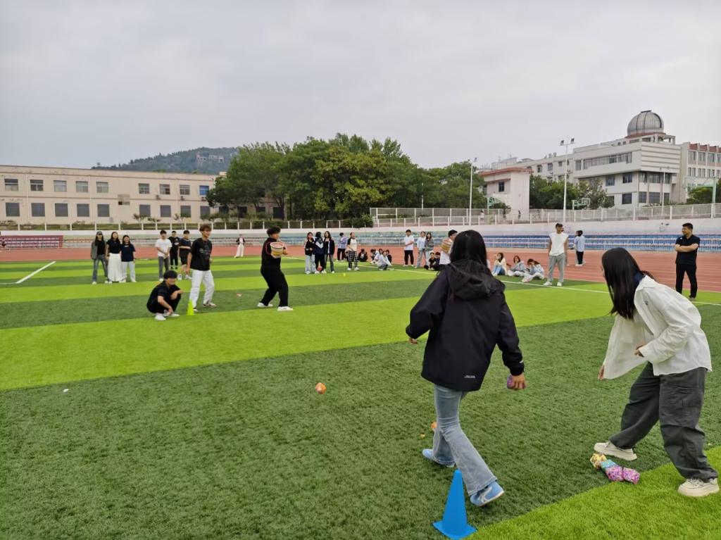 5月23日举办的趣味运动会共设置7项计时制团体比赛和1项拔河压轴赛。其中,大象旋转跑考验选手的平衡感与方向把控能力,沙包投掷、筷子夹乒乓球接力则聚焦团队成员之间的精准配合,拔河比赛更是将团队协作精神推向高潮。比赛中,选手们争分夺秒、默契配合,现场加油声此起彼伏,气氛热烈。