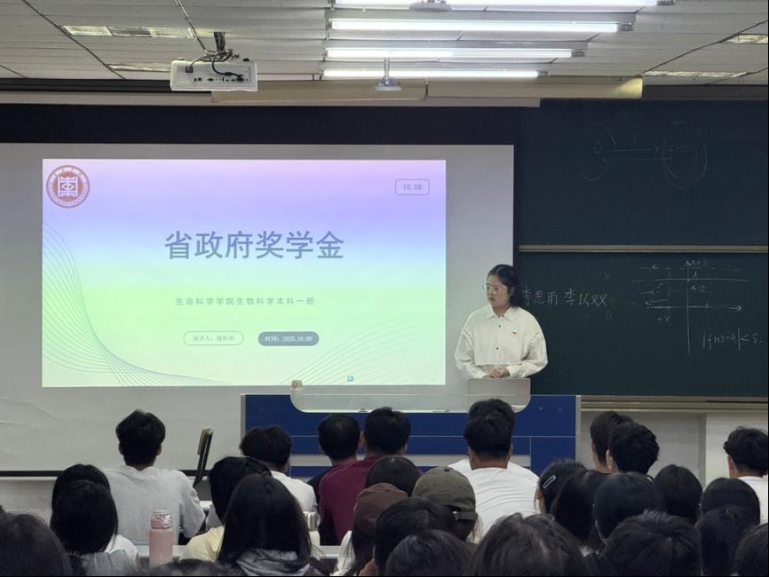 为传递优秀榜样的拼搏精神,激励新生,指引其找寻正确的发展方向,10月9日晚,太阳成集团tyc33455ccww成功举办榜样教育活动。本次活动特别邀请到获得国家奖学金学生袁雪、获得省政府奖学金学生滕梓羽担任主讲人,2025级全体新生到场聆听。