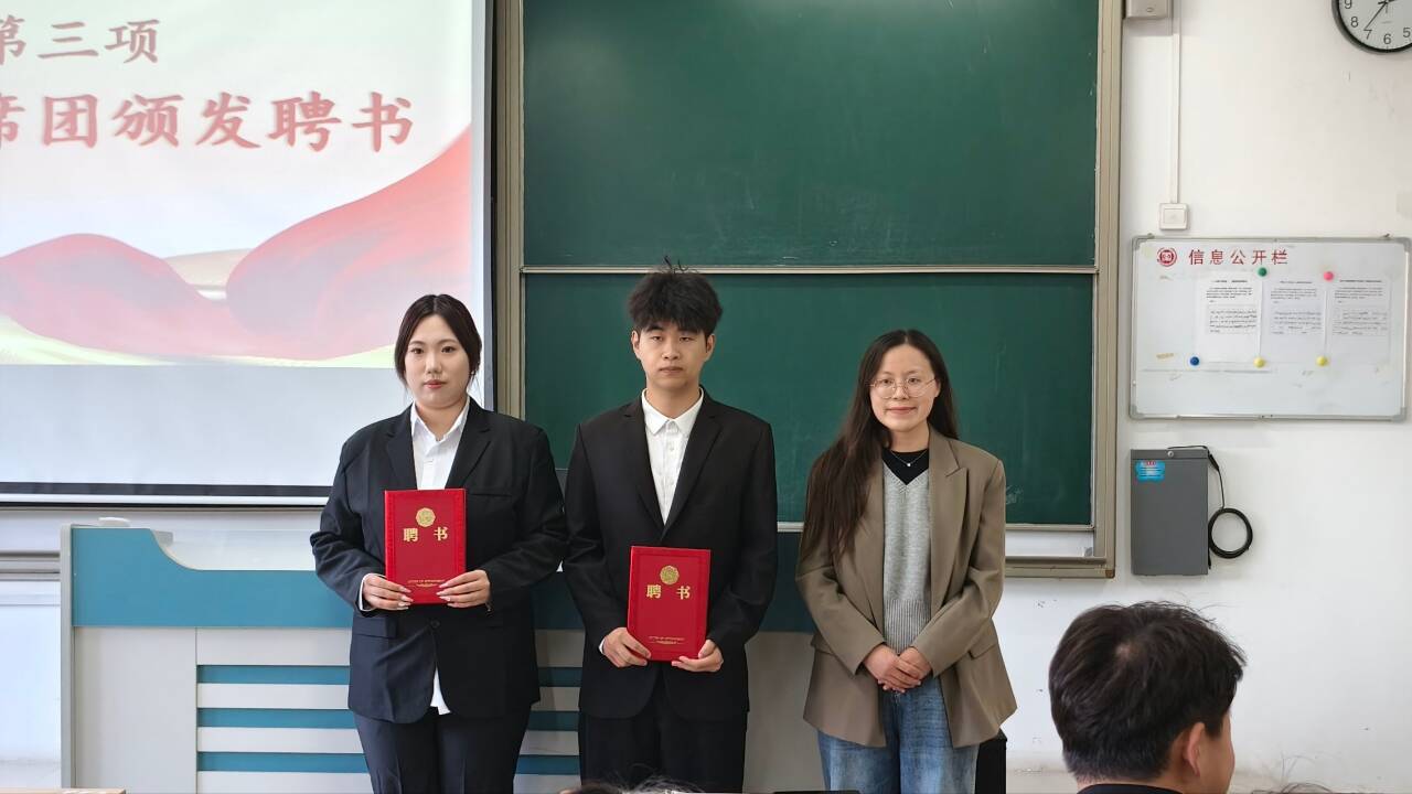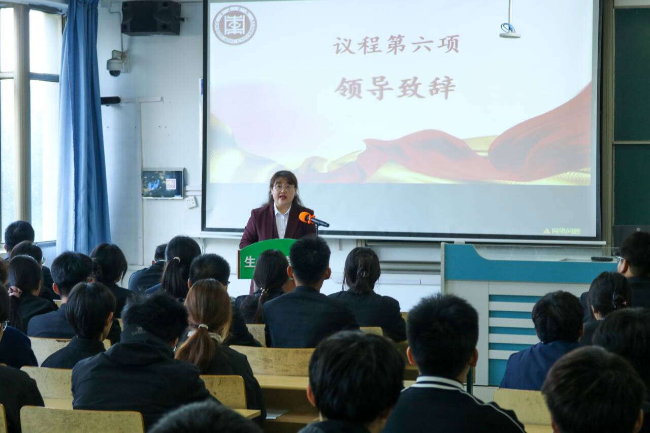 大会在国歌声中拉开帷幕。首先,学院辅导员李光晨老师宣读2025届学生会及文明自律委员会学生干部名单。随后辅导员孙士媛、褚宏宇老师为新当选的学生会和文明自律委员会主席团成员颁发聘书。新当选的学生会主席张凯扬做表态发言,代表全体学生干部郑重承诺,将始终牢记“服务同学、奉献学院”的宗旨,带领全体成员加强团结协作、提升工作效能,打造一支有担当的队伍。最后,学院党委副书记韩笑老师作总结讲话,祝贺新一届学生会、文明自律委员会成立,并对全体学生干部提出明确希望和要求,鼓励大家以饱满的热情、务实的作风投入工作,在实践中锤炼本领、增长才干。