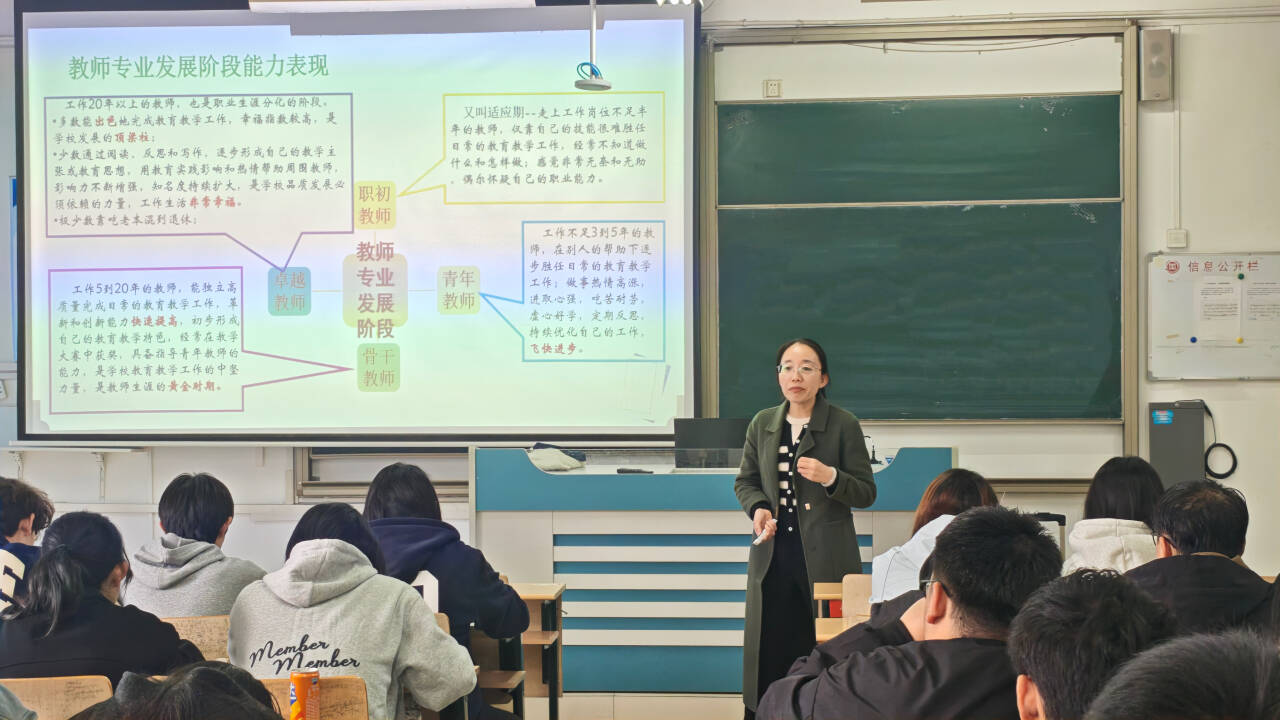 报告中,赵星艳老师结合自己从生物科学专业学生成长为高中骨干教师的经历,生动阐释了“教学相长”的深层内涵,强调了“以赛促教、以研促学”的专业发展路径,为在座学弟学妹提供了清晰的职业规划指引。她勉励同学们理性看待成长中的成功与挫折,始终保持对生物学科的热爱,在实践中不断积累、反思与突破,逐步形成个人教学风格。
