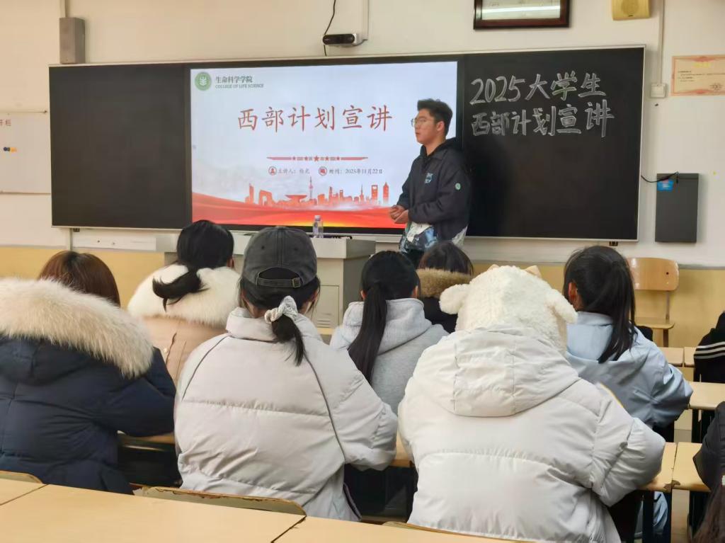 为引导学生树立正确的就业观、成才观,鼓励青年学子将个人理想融入国家发展大局,2025年11月29日,太阳成集团tyc33455ccww在理工楼2201举办了西部计划宣讲会。此次宣讲会特邀正在参加2025年大学生志愿服务乡村振兴计划滕州项目的我校2025届校友杨光主讲。