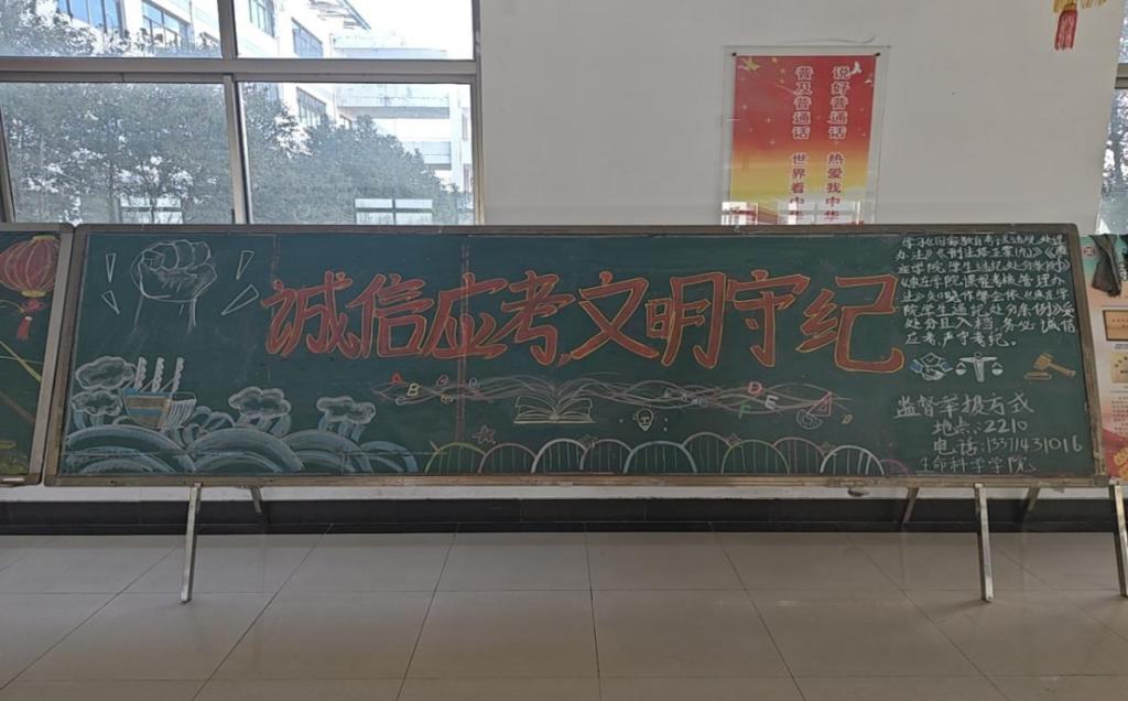 为更好迎接即将到来的考试周,营造公平公正的考试氛围,太阳成集团tyc33455ccww各班积极响应学校部署安排,于2026年1月5日–9日组织召开“诚信应考,文明守纪”主题教育活动,通过板画警示、集中班会、签署承诺书等多种形式,进一步严肃考风考纪。