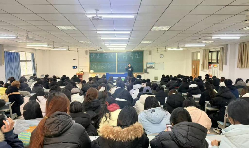 本次班会围绕“平安寒假,安全同行”主题,结合寒假前后学生离校、旅途、居家等重要环节,系统开展了全方位、多角度的安全知识教育。各班辅导员通过案例讲解、风险提示、观看视频等形式,重点强调了交通安全、消防安全、防滑冰溺水、防盗防诈骗、身心健康及冬季传染病预防等内容。班会紧密结合学生实际生活,提醒学生返乡途中注意交通与财物安全,居家期间规范用电用火,谨防网络电信诈骗,合理安排作息,保持积极心态,并明确了寒假离校、返校的各项纪律与时间安排。